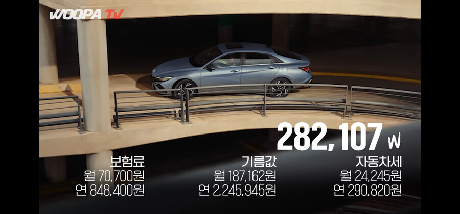 보험료 + 기름값 + 자동차세 월 30만원, 연 300만원~350만원 정도.