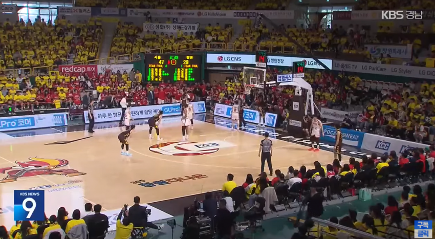 전광판도 경기에 뛰고 있는 선수 5명만 표시돼 경기 전체 흐름을 알기 어려움