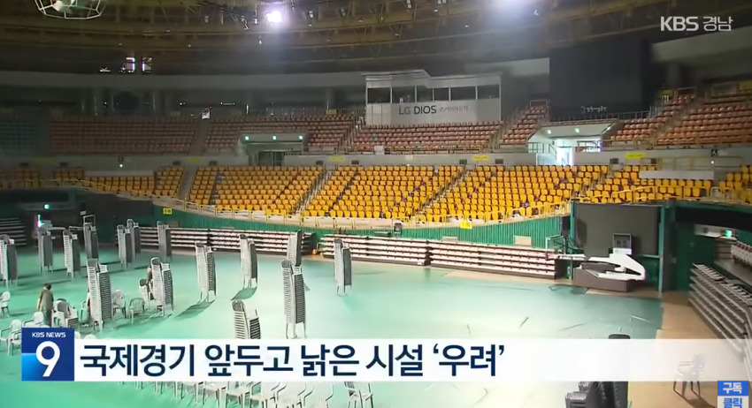 창원체육관의 낡은 시설이 국제경기 위상에 안 맞는다고 함